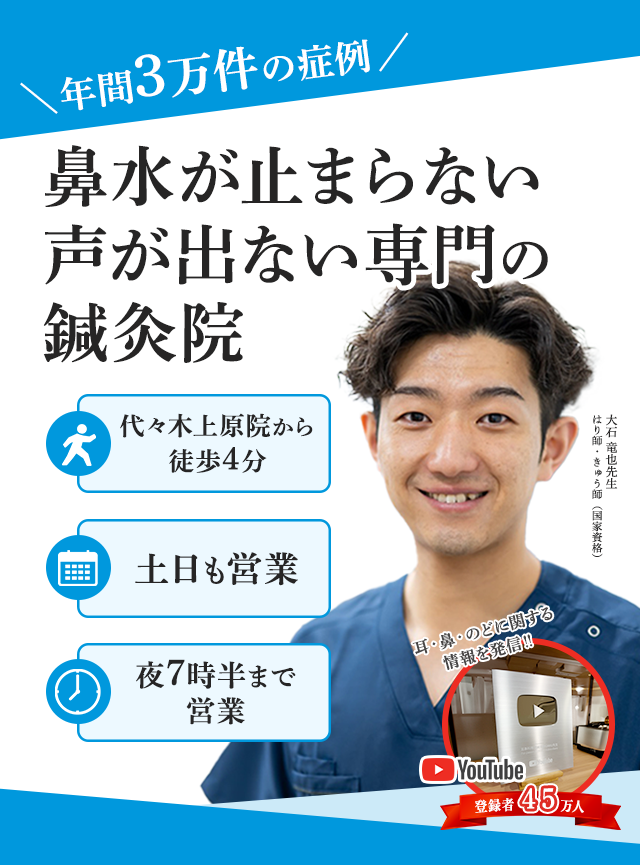 一週間後にどうしても人前で話さなくてはならない事があり、なんとかして話せる程度まで声を治したいと、色々探していたところ、「鍼治療がいいんじゃない?」と知人に言われ、試してみようと思いました。